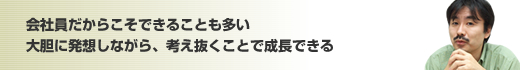| 西野:会社のカンバンを使って、最大限できることに挑戦してほしい。大胆な発想を繰り返し、同時に徹底的に考え抜くことによって、人は大きく成長できます。自分が失敗したぐらいじゃ会社はつぶれません。わざと失敗したわけでもない限りクビにはならないだろうし、万が一クビになったとしても、これだけ雇用が流動化しているのですから、不安になる必要なんてありません。「会社員というのは不自由なもの」と思い込んでいる人が多いかもしれませんが、実は会社員だからこそできることだってたくさんあるのです。むしろ起業した後の方が、制限されることは多いですね。 |